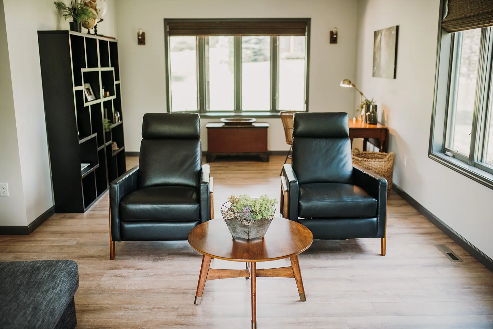 Finally we helped our client choose some key furniture pieces such as the West Elm couch, leather chairs, and the dining room table and chairs.